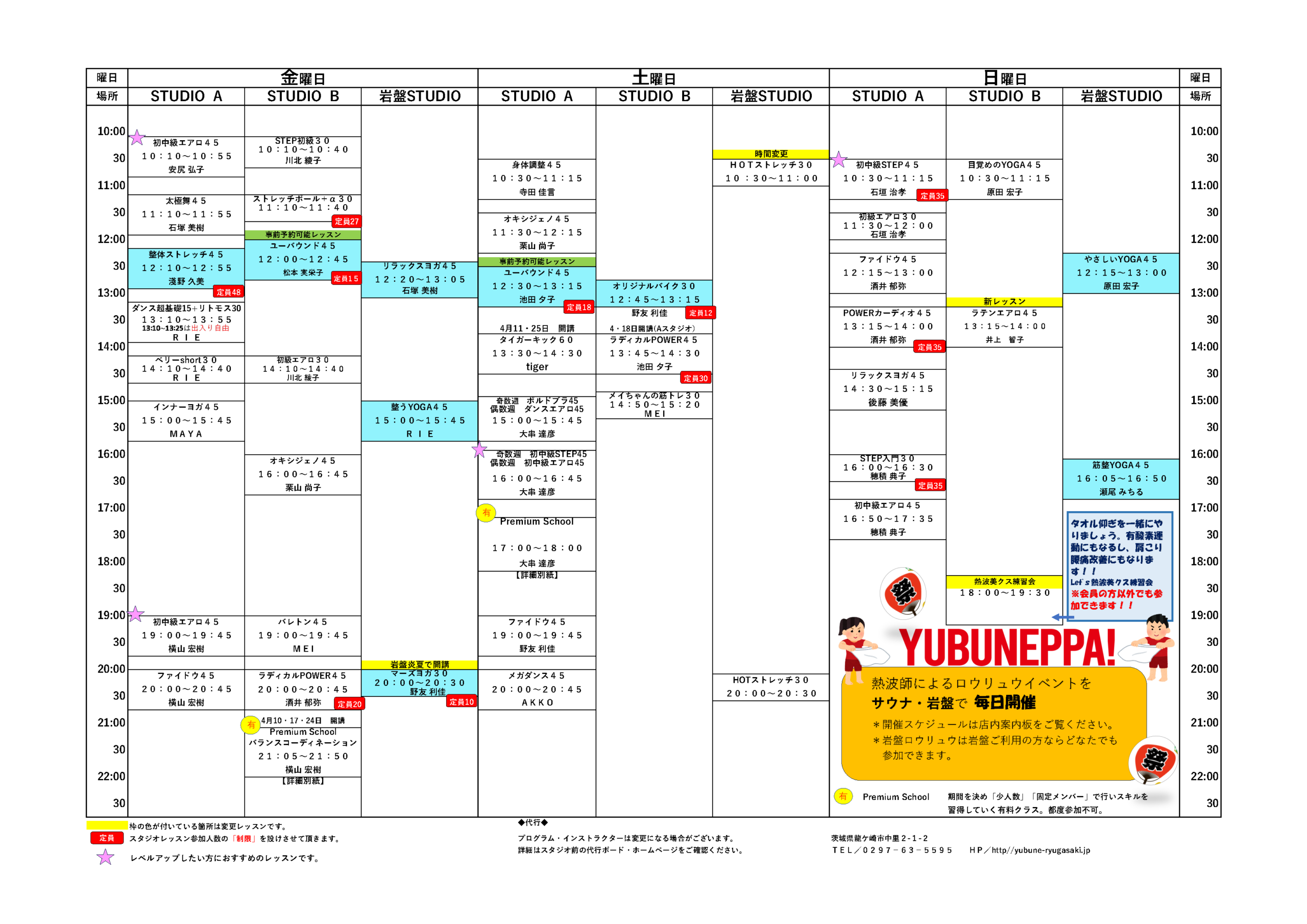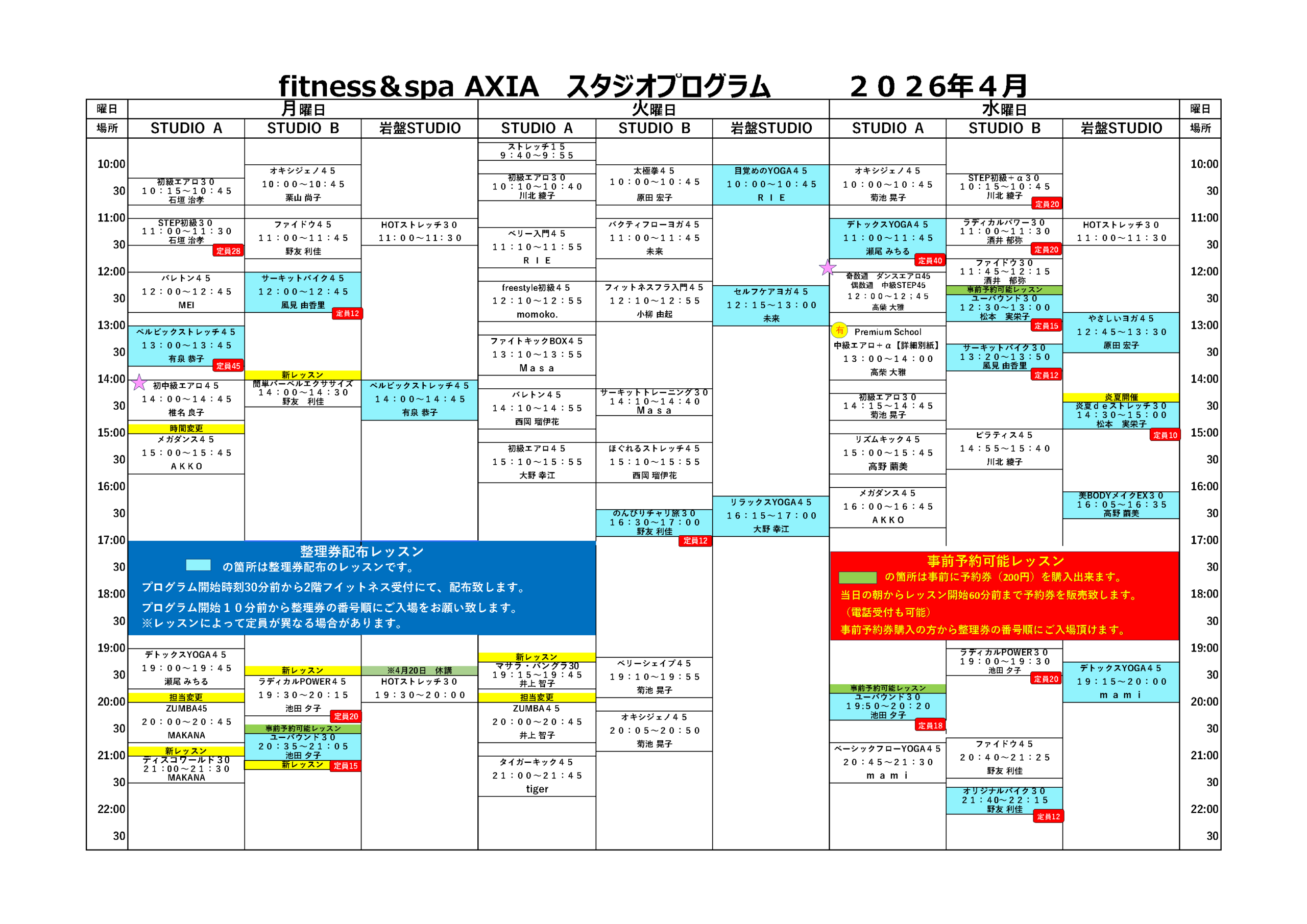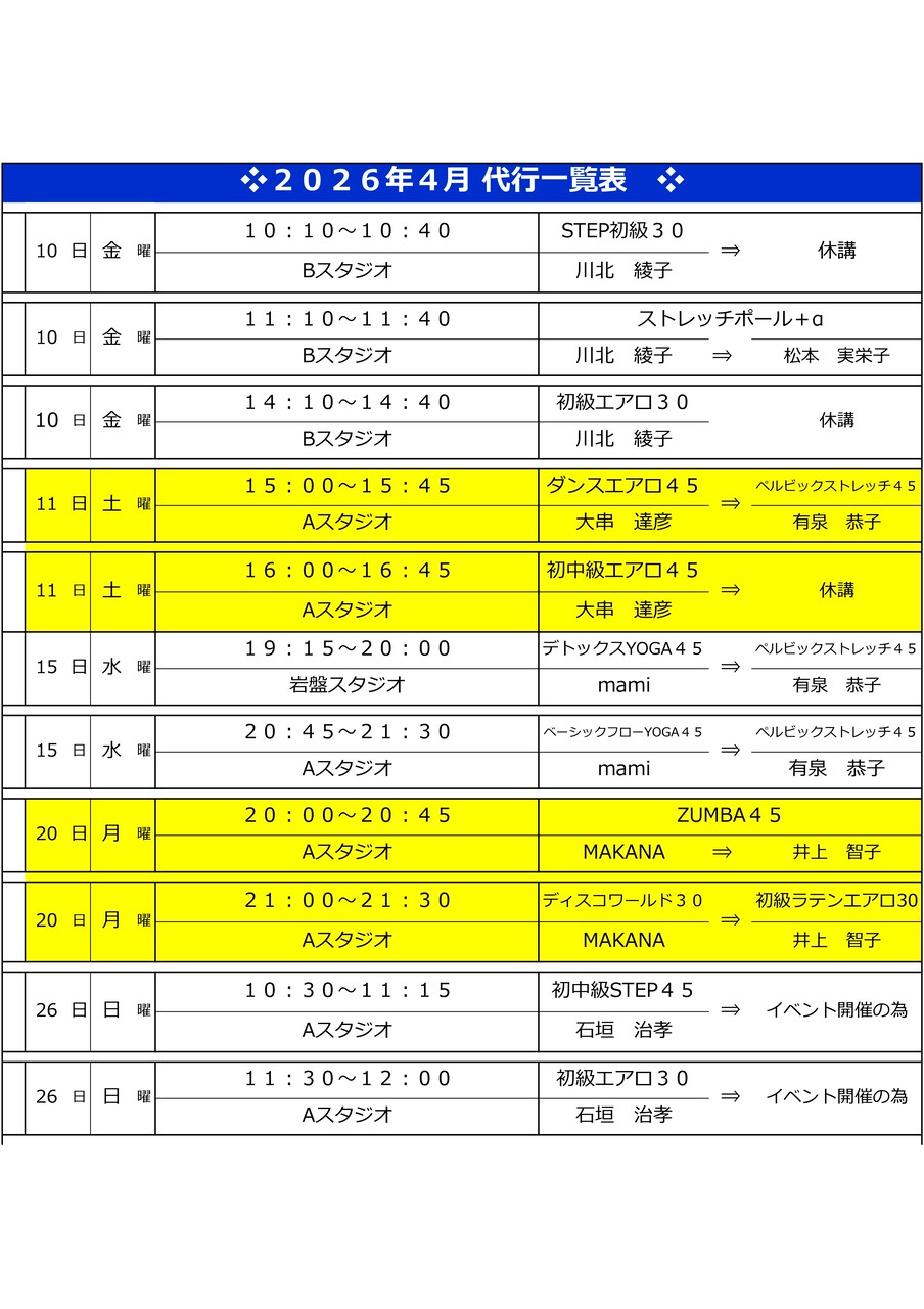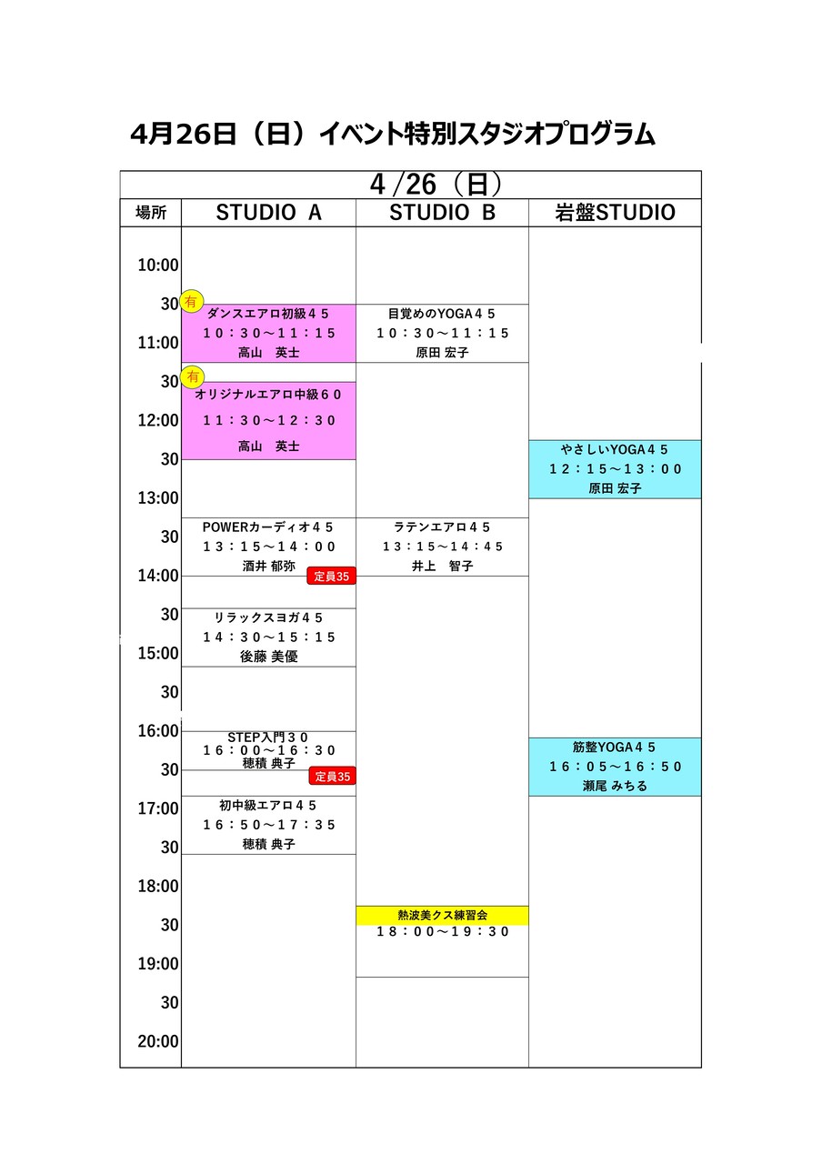 全てのレッスンで楽しく運動できるよう心がけています。皆様のご参加お待ちしております。